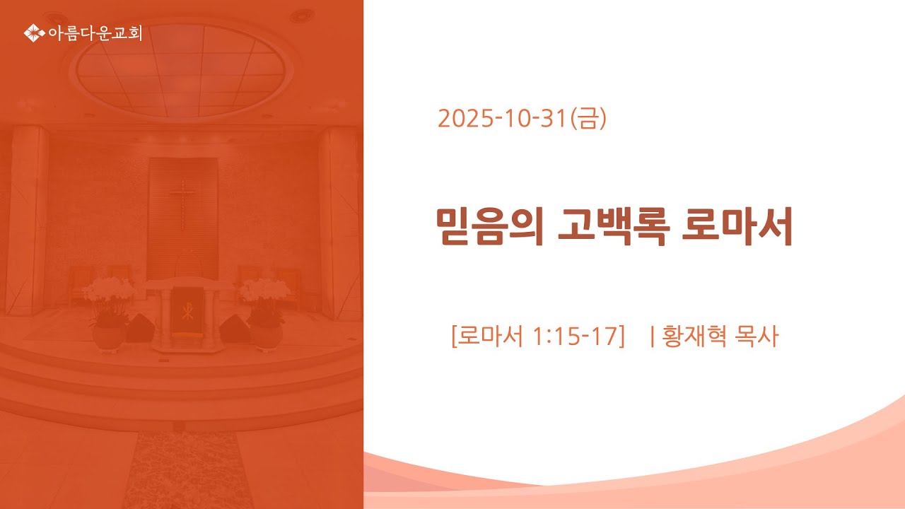 | 공지 | 우리를 위해 간구하시는 성령 | 아름다운교회 | 2025-08-22 | 157 |