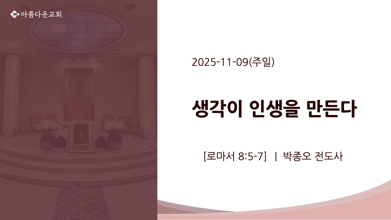 | 공지 | 허무극복(2) 죽음을 인식하라 1 | 전도서 7:1-7 | 이관형 목사 | 2025-10-12 |