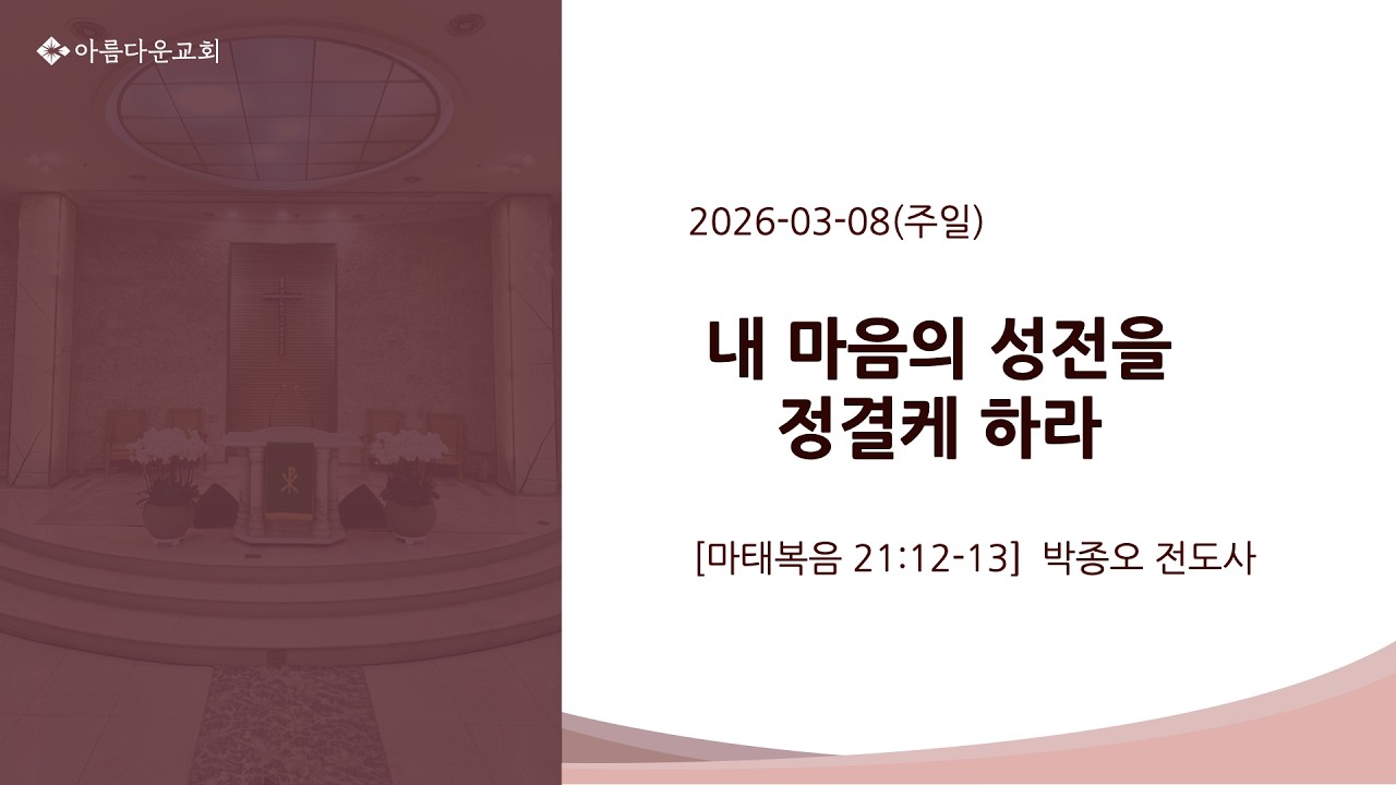 | 공지 | 그리스도 예수의 마음 | 빌립보서 2:5-11 | 이관형 목사 | 2026-02-22 |